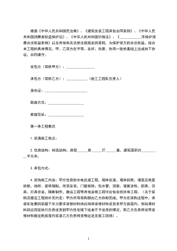 甲方:_______________乙方:_______________甲乙双方经过友好协商,就乙方承包甲方所有的装修施工事宜达成一致,签订本合同。一、乙方包干承包该房屋装修的全部施工工作,即实行“包工不包料”,甲方自备装修材料,乙方只负责施工,具体施工内容详见附件。二、包干承包费用:人民币______________整(小写______________元)。除此之外,甲方不再向乙方支付任何费用。三、支付方式:_______________1、乙方进场施工之日,甲方向乙方预付人民币______________圆整(小写¥______________元);2、乙方完成全部装修施工后,支付进度款人...